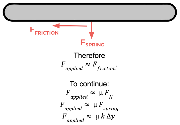 Accordingly, the applied collision force on the Hapkit was set in the Arduino code to be the product of friction coefficient, spring constant k, and depth of y into the surface. Coefficient of friction was set to 0.2 (www.tribology-abc.com) to mimic plastic-on-plastic friction. k was set to 2 to ensure a noticeable and rigid collision while not overpowering the vibration sensation as well. y is calculated by the Arduino code during the collision continually.