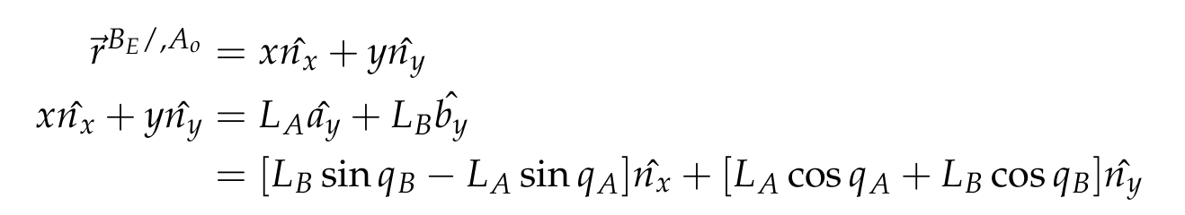 We model the robotic arm (our plant) as two linkages with revolute joints at Ao and Bo (Figure 1). Link A is attached to a Newtonian reference frame and has length LA. Link B is in contact with A through Bo and has length LB.
