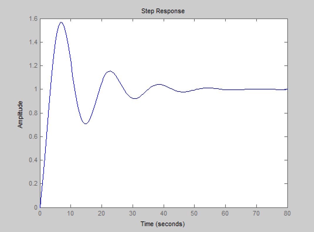 To confirm that our plant model accurately represents the physical system, we input a unit step into the open loop linearized plant, and examine the system response: