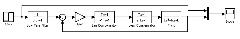 We plan to implement a lead-lag compensator to give us control of the plant, which is shown below. A low pass filter (with a corner frequency of 2Hz), is implemented before the input of the control system to knock out any oscillatory inputs, which internal combustion engines (and passengers) quite dislike.