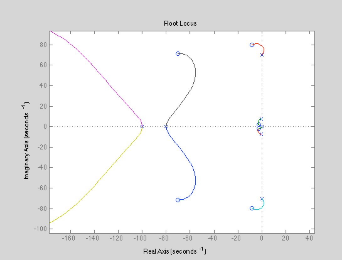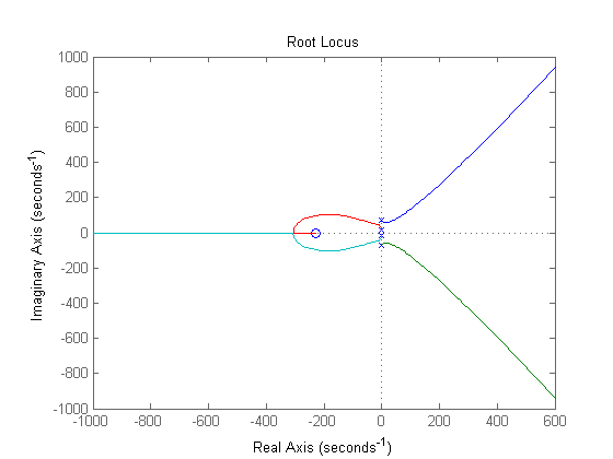 Once we had determined the form of the final controller, we plotted the root locus of the closed loop system and saw the following: