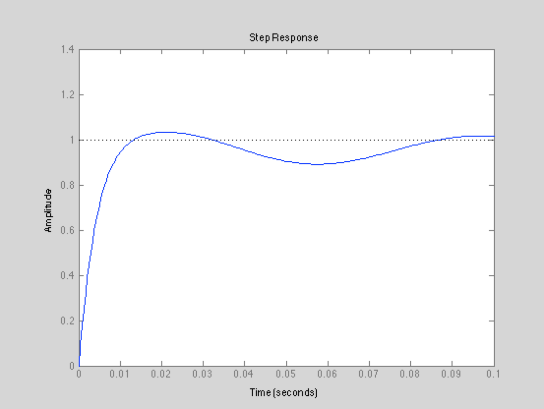 In this system, the input signal is the desired increase in tractive force and the output signal is the actual increase in tractive force. By inspection, the system seems to meet our specifications, but to verify we also checked the performance of the controlled system with the built-in MATLAB command stepinfo: