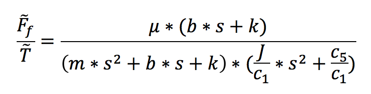 Finally, we multiplied our output force on the second mass (Fnormal) by a friction coefficient to obtain our desired tractive force.