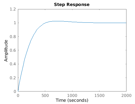 Since we did not have to worry about stability, we instead selected parameters according to how they would achieve our other design specifications: a settling time of 900 seconds and low overshoot.