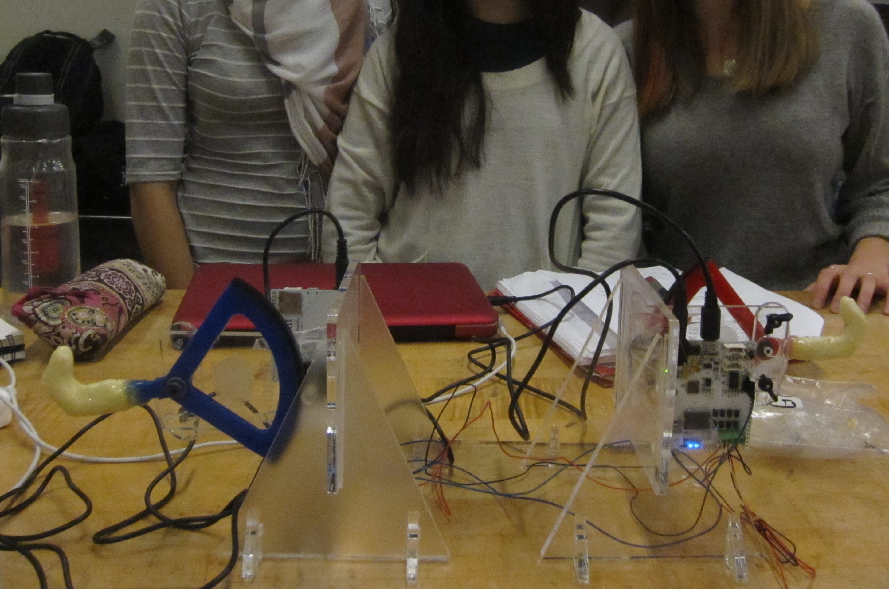 During the open house, a lot of people were very interested in our project and how it could be improved. While they thought the one-dimensional motion was cool, a lot of them suggested possible making the device two or three dimensional or being able to feel the "squeeze" force would be even cooler. In order to do this, however, we would need a lot more resources and would have to start from scratch.