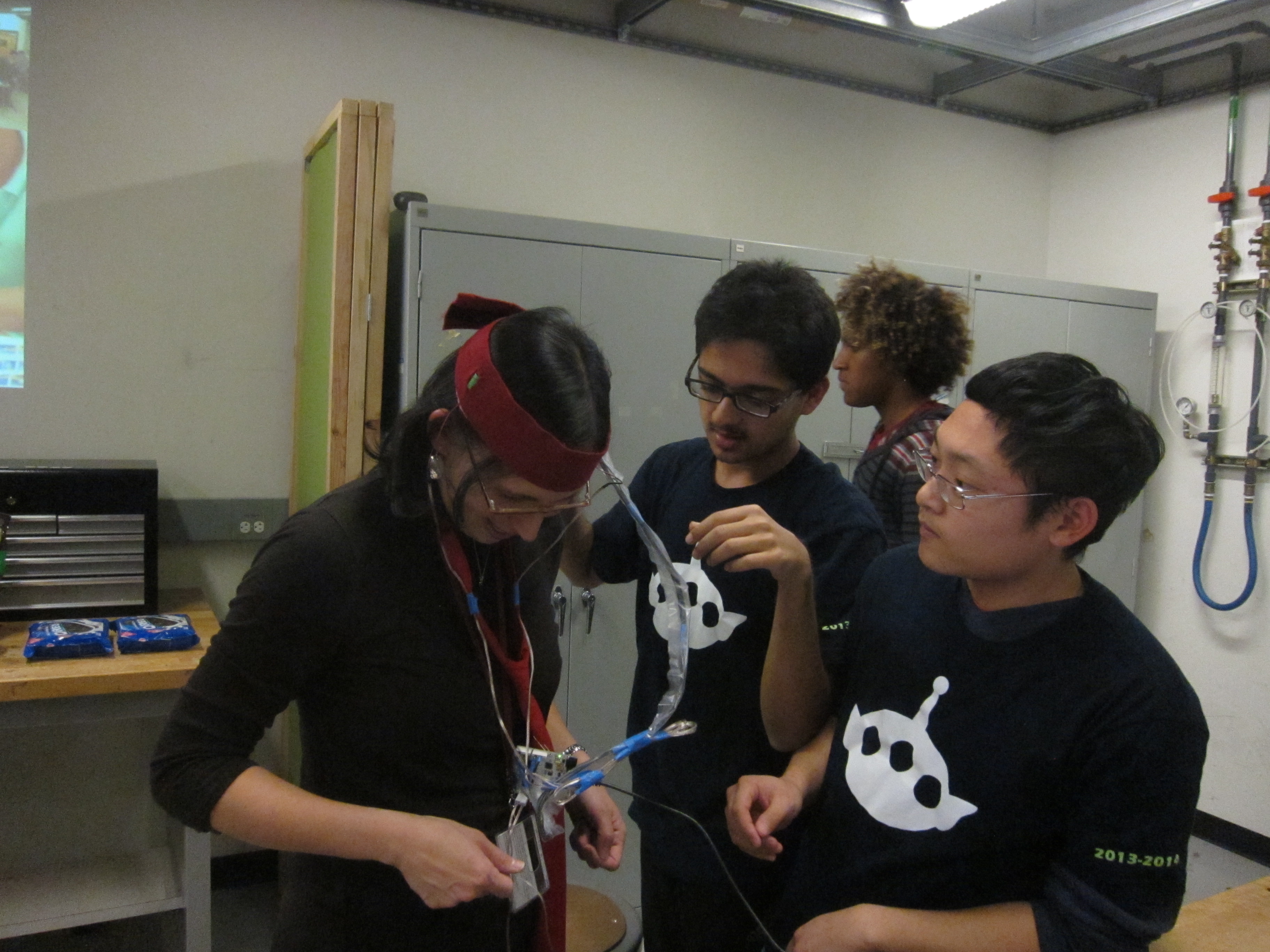 For the successful completion of our head bangers project, we thank Yash Ashish Savani(Freshman, Larkin), Kevin Mori (PRL electronics TA), Sydney (Freshman, Larkin), Mary(RA, Larkin for all the glow in dark equipment), and Allison Okamura (professor). They provided invaluable aid, offering helpful tips on construction and programming. Special thanks to Matt Ohline for providing us with a gyroscope.