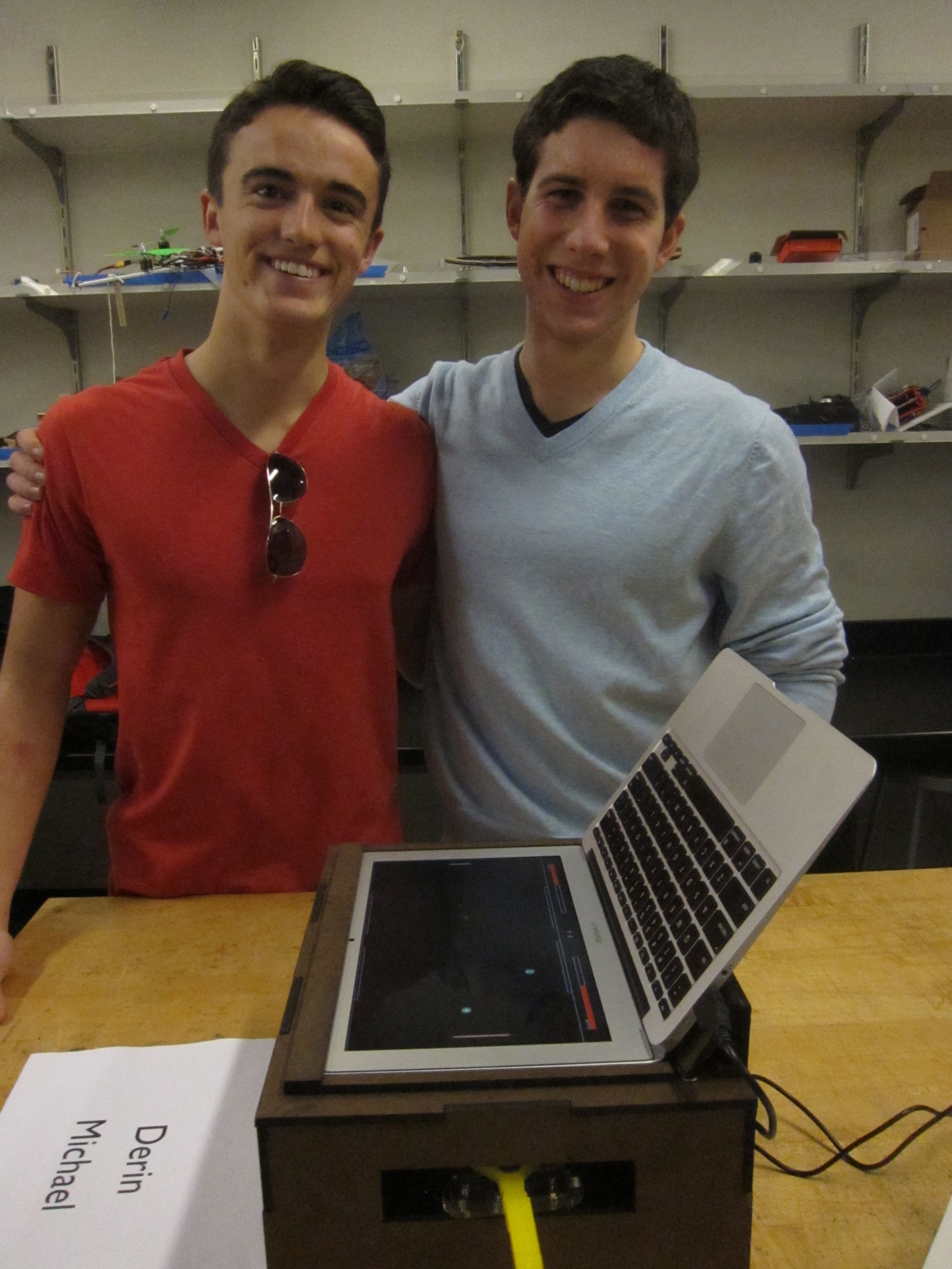 The basic layout of our project consists of two Hapkits mounted inside a box that supports the weight of a laptop which functions as a display for the game.