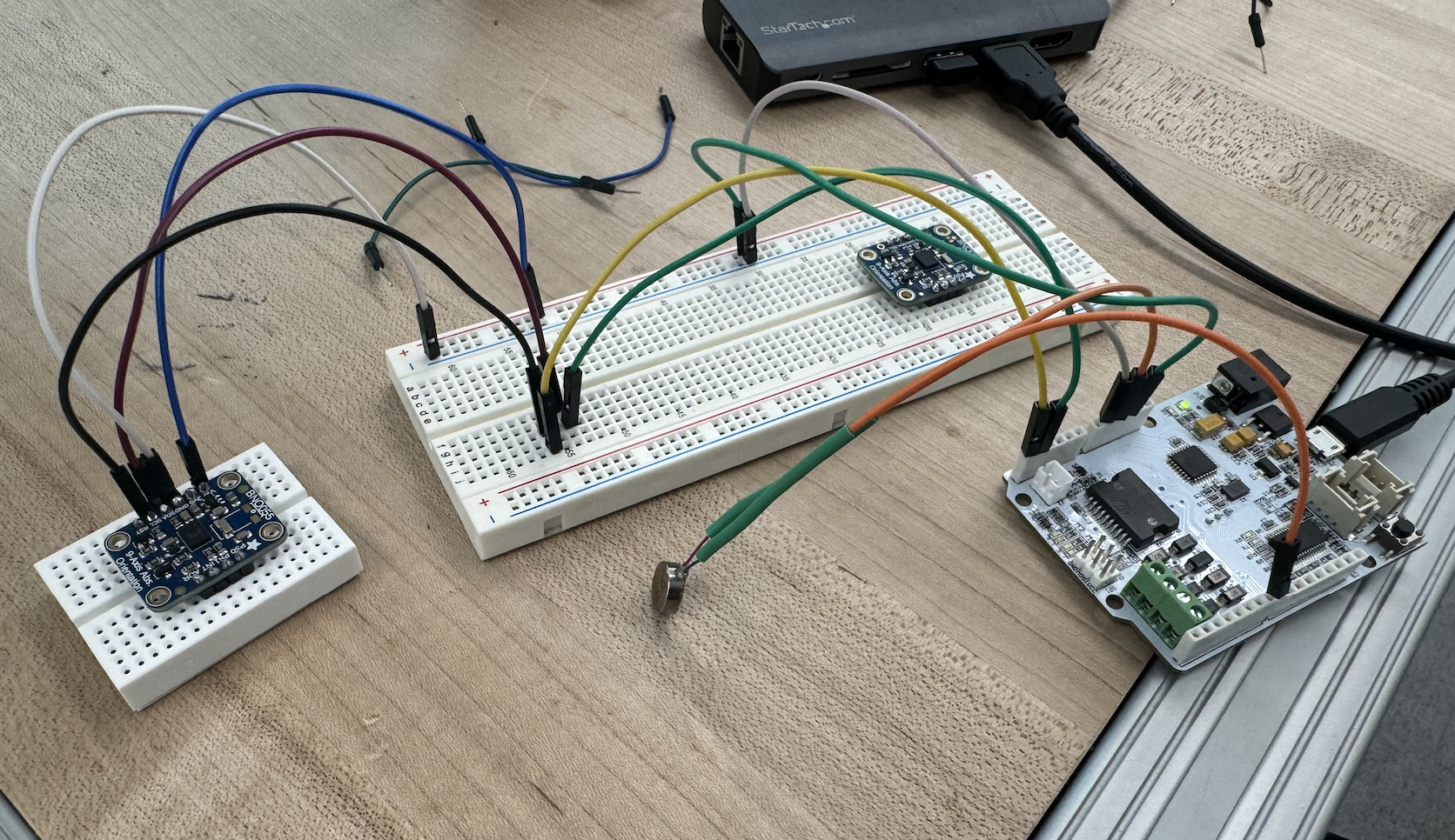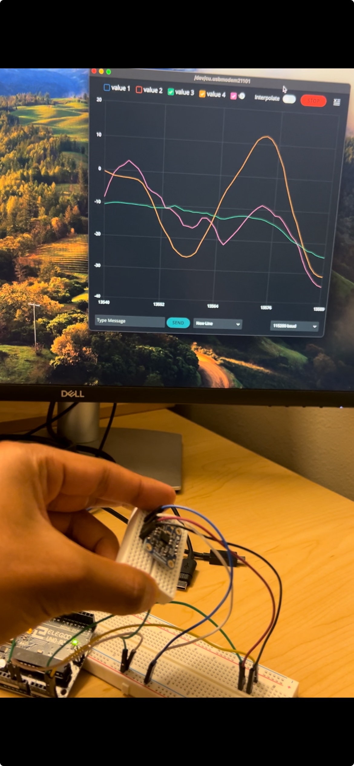 For the first checkpoint, our first goal was to get our IMU sensors and vibration motors soldered and working. We also wanted to start reading data from the IMU so we could solidify how we were going to use the live sensor data to provide haptic feedback to improve the user’s posture. One initial challenge we faced was deciding on which sensor to use for our project. Based on the existing literature we surveyed, there was a variety of sensors used for determining relative angle and position for haptics including IMUs, accelerometers, gyroscopes, etc. Given the limited time available to us for this project, we decided to go with an IMU which does not require us to integrate various sensors together to avoid drift in our measurements, and instead provides trustworthy measurements out of the box.