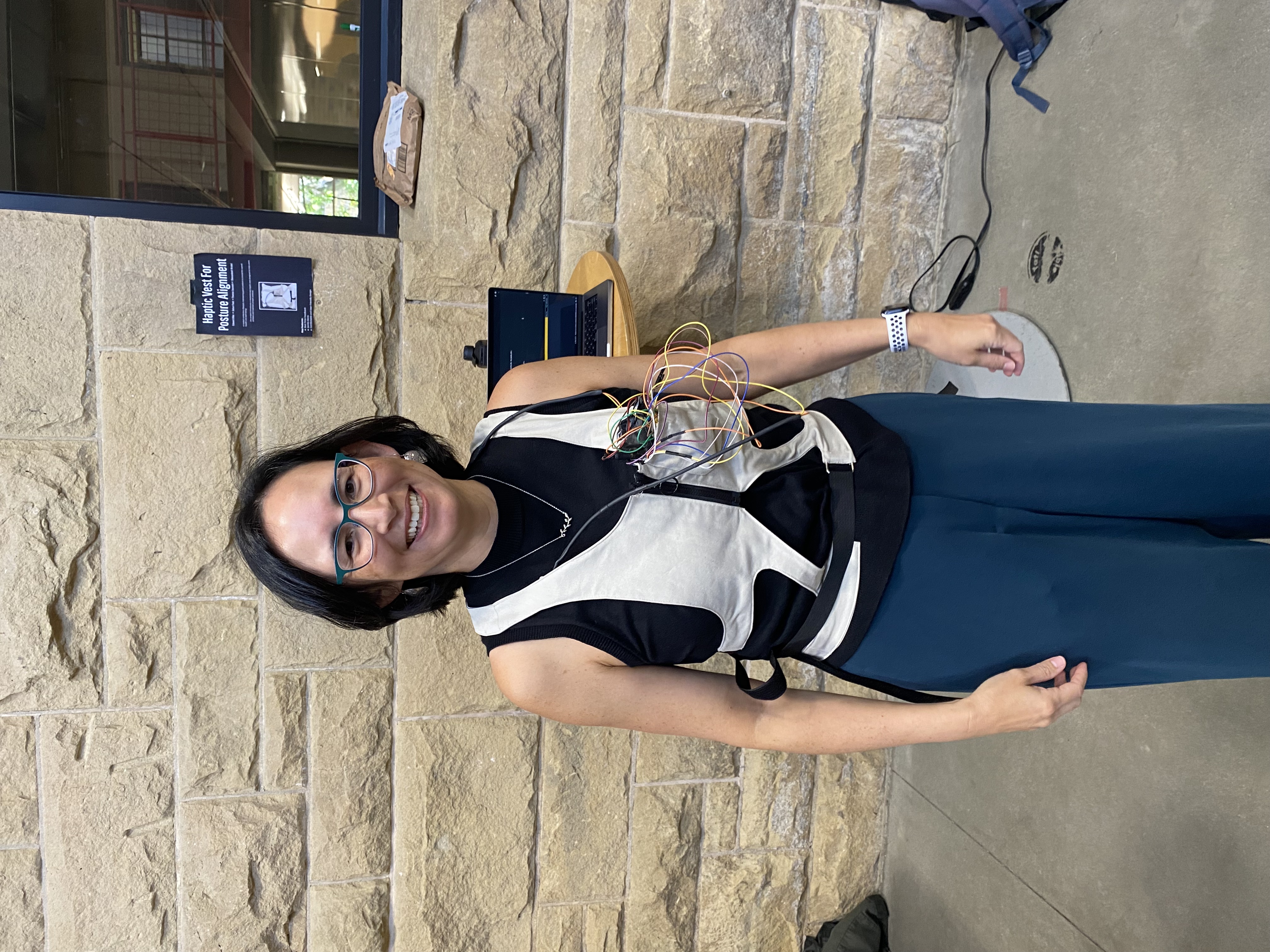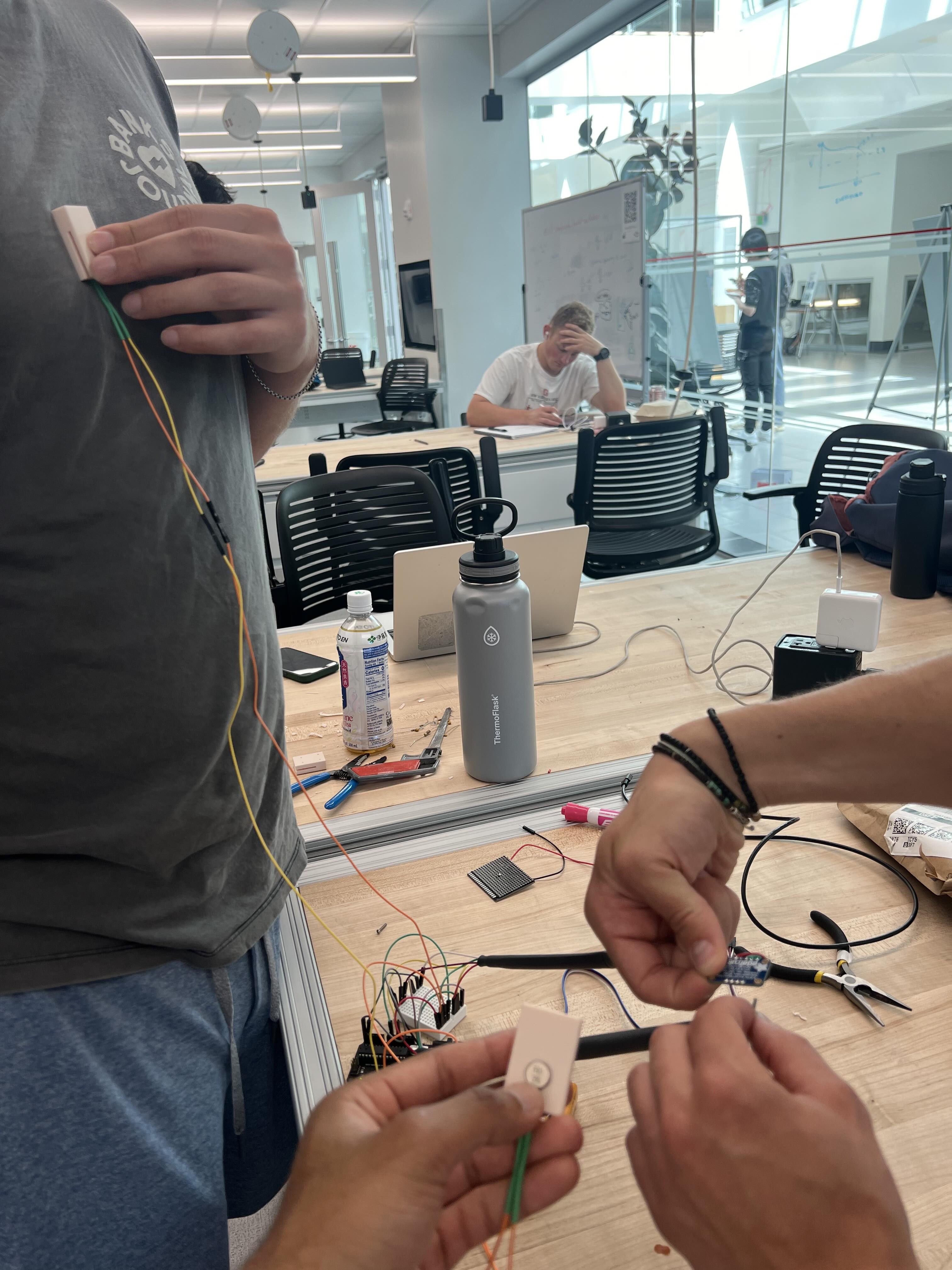 The motivation for this project is to develop a device that helps users improve their posture, to mitigate and prevent back pain. Given that many people have poor proprioception, or ability to sense their body’s position and movement accurately, we thought it best to incorporate haptic feedback into our design. Haptic feedback is particularly advantageous for this task as it is easy for humans to interpret, leading to a faster feedback loop for users. Using a vest enables an easy tracking of the spinal column’s position, while enabling direct tactile feedback with vibration motors on the chest.