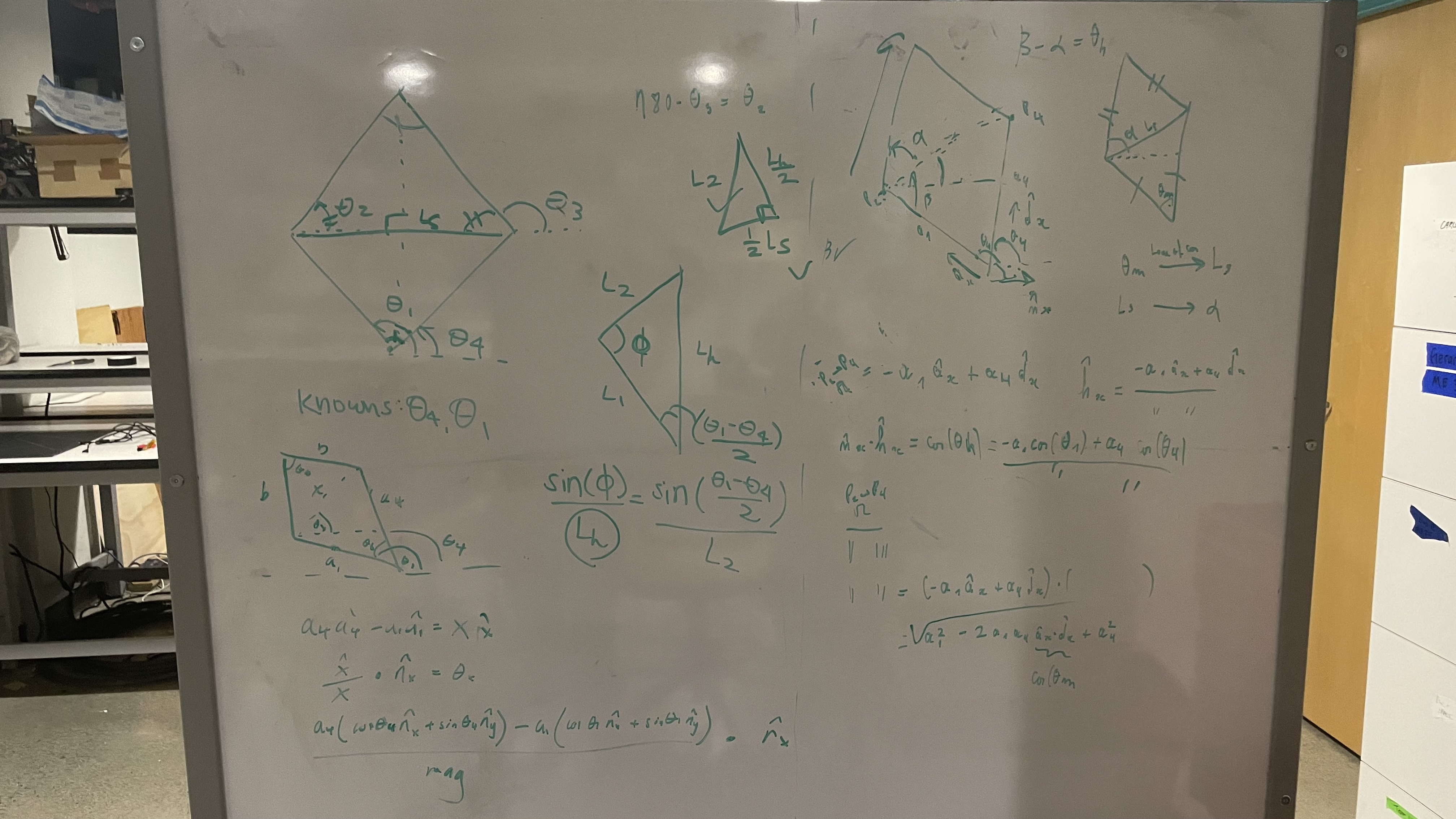 While the kinematics of the position of the handle have been done, it has been set constant since we can’t yet vary the two known angles with the pantograph.