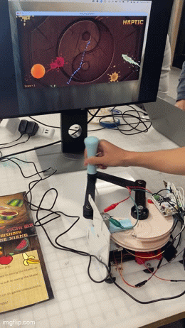 As haptic games become more increasingly widespread with the improvement of both realistic haptic feedback due to continued research int he field and the increased popularity of VR, this can serve as one game of many to shift from a 2D planar surface of a phone or tablet device into a 2 DOF pantograph that provides more realistic game feedback that allows the user to feel as if they are physically immersed. The game elicited smiles, gasps, and cheers among the individuals who played it (and waited in a line to play it) at the Haptics Open House. This makes our generation reminisce in the games of our childhood, which are now improved with haptics. At the end of the day, haptics can serve as a way to make people feel more connected.