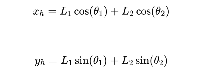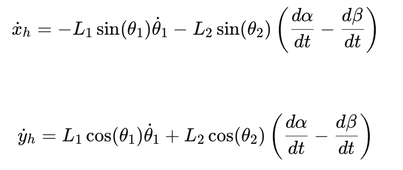 Finally, substituting θ_dot2 back into our derivatives for xh and yh: