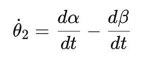 Now, we need to express θ_dot2. From the previous analysis, we have Θ2 = α − β where: