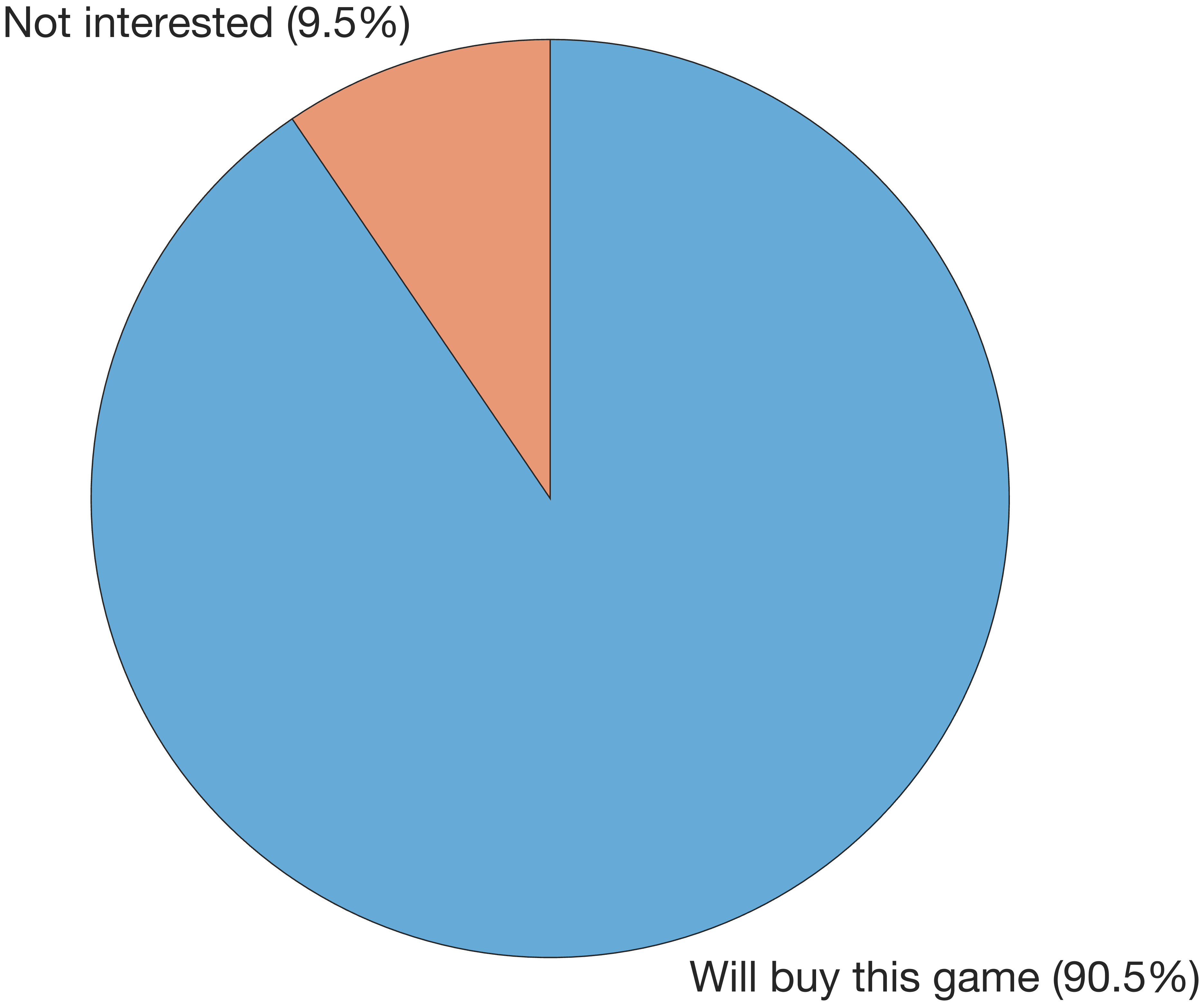 According to the survey, 90.5% of respondents are interested in buying this game, while 9.5% say they will not. Among those not interested in purchasing the game, the primary reasons are the lack of information about the game's price and the fact that some individuals do not play games at all. In summary, the haptic integration of Fruit Ninja game provides a great user experiences.