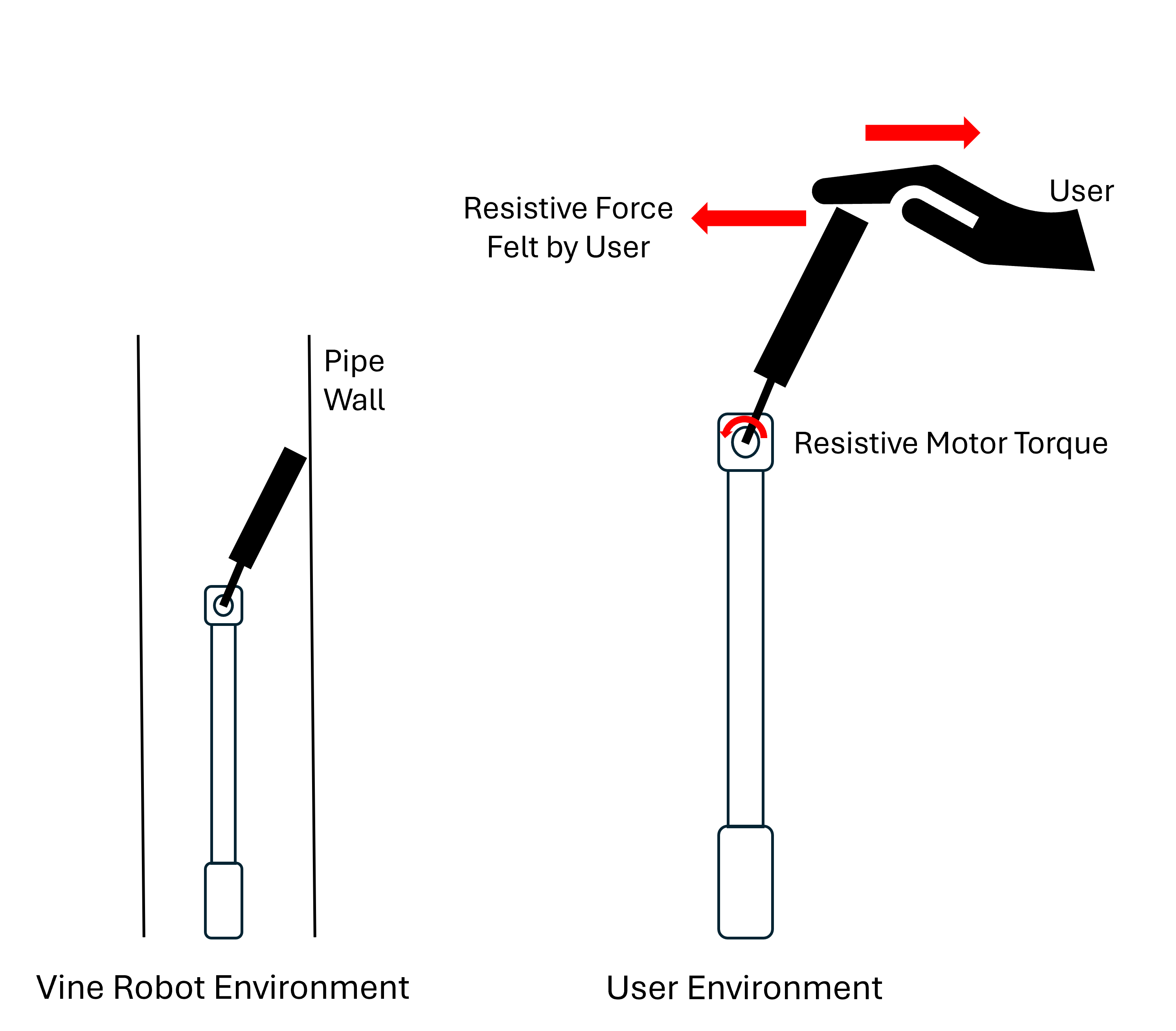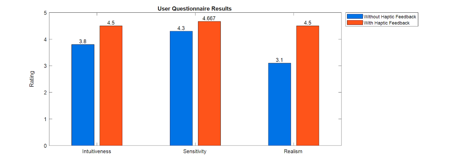 - Conduct user testing with and without haptic feedback where the user’s visual feedback is only the camera view at the tip of the robot, instead of being able to see the entire transparent pipe structure