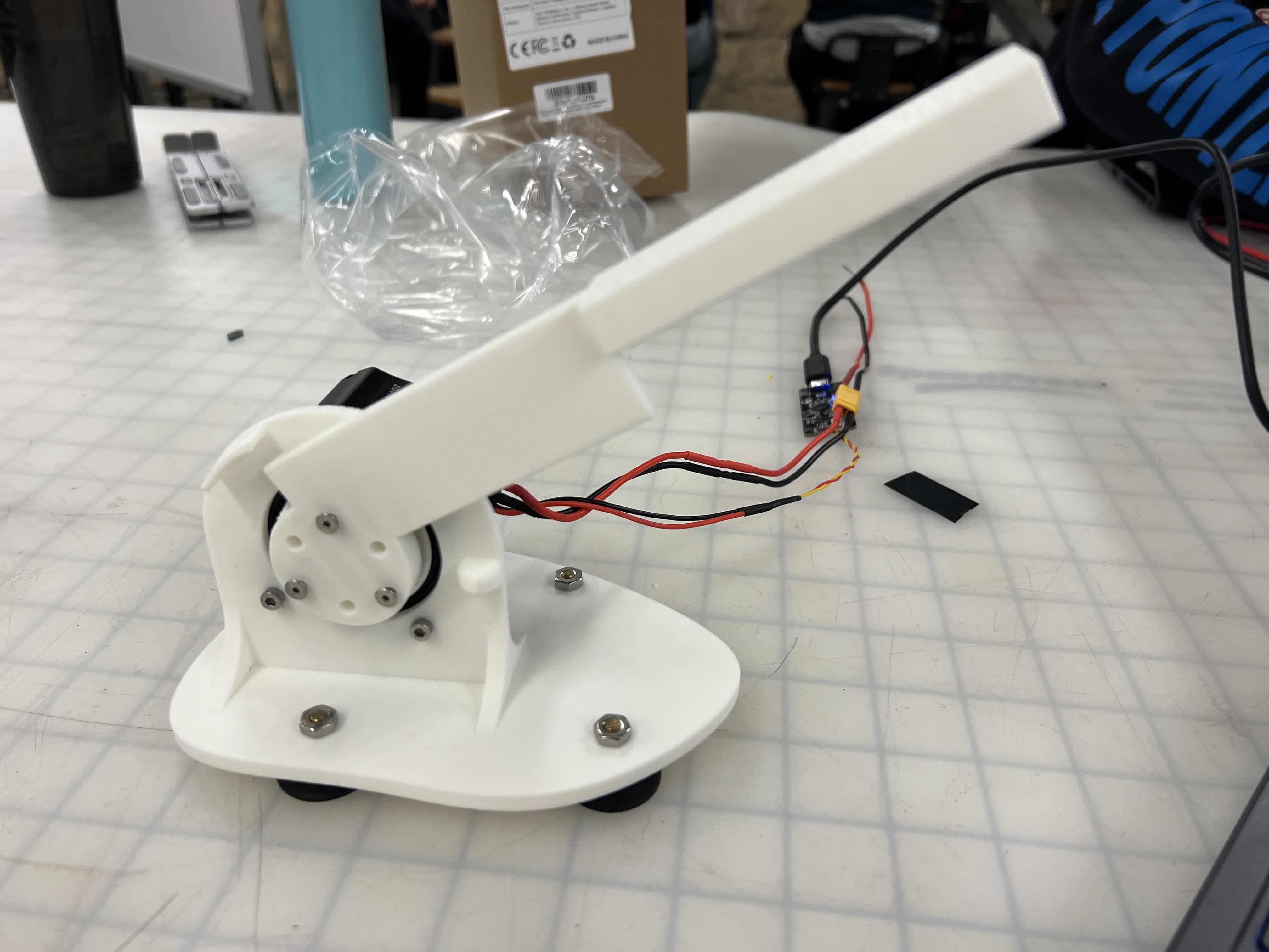 In the mechanical subsystem, we modified the original Hapkit design by repositioning the suction cup base to be behind the rotational plane of the knife. This change was motivated by safety concerns, especially during testing with a direct-drive transmission. With direct drive, the knife can rotate continuously without colliding with the base—an important feature for tuning parameters like voltage, current, and PWM signal.