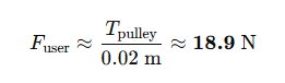 Through the capstan transmission (r_sector = 75 mm, r_handle ≈ 150 mm, r_pulley = 10 mm), this torque corresponds to a user-perceived force of: