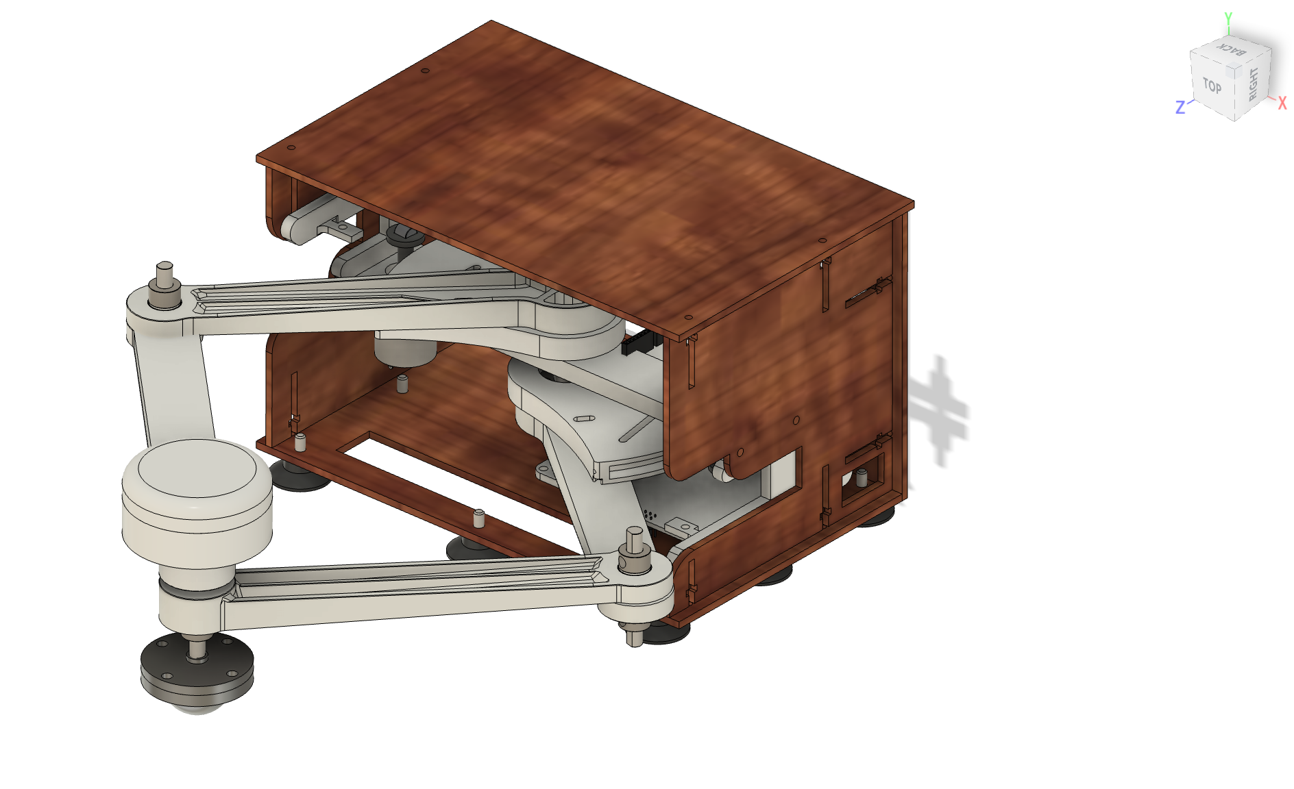 We have not fully assembled the laser cut enclosure to allow for easier access to the boards during debugging and electronics integration. Here is a video of the pantograph range https://drive.google.com/file/d/1AndhvP28gCZ6JidAXklCB3XExU5HUEHy/view?usp=sharing
