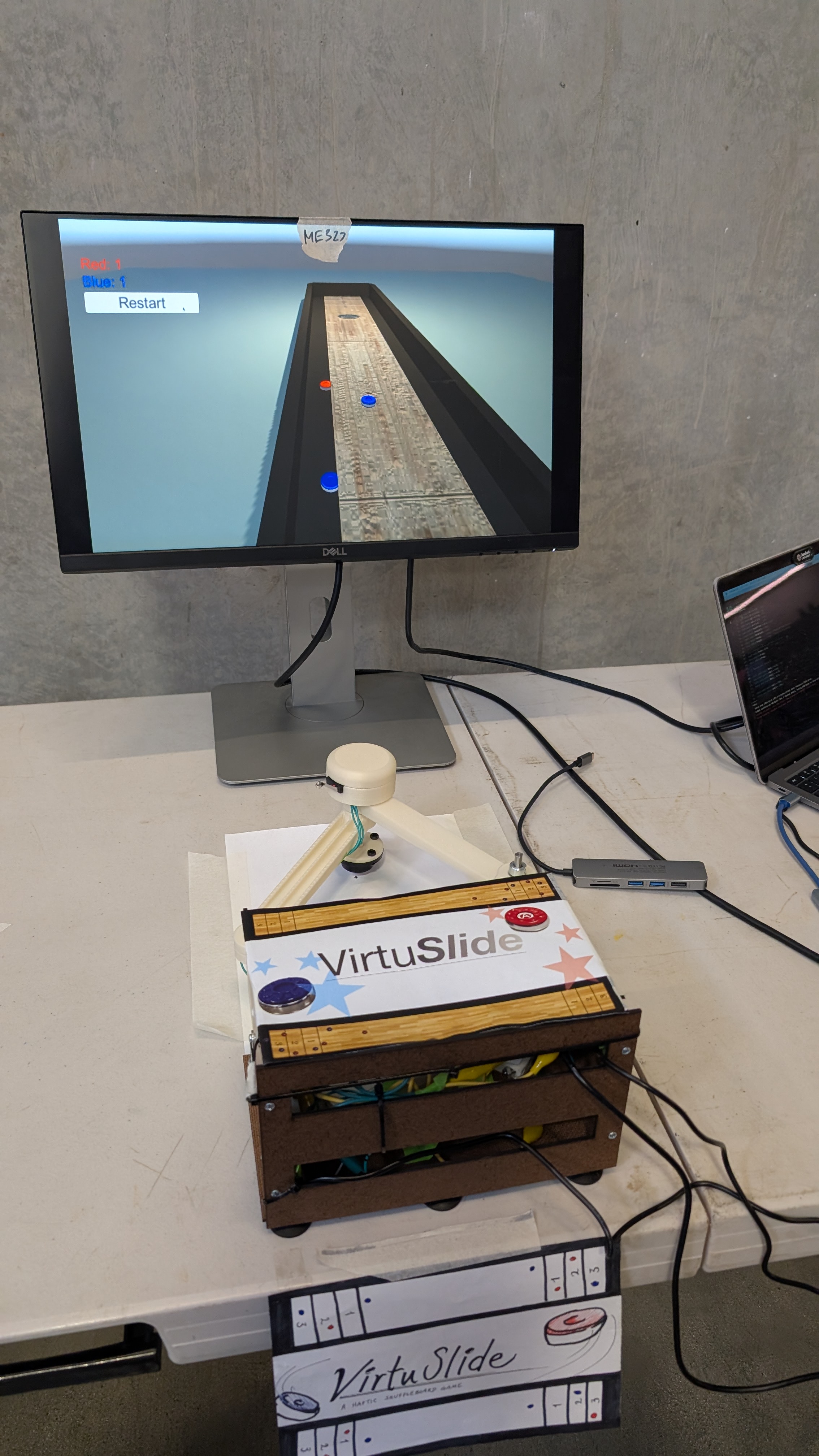 Overall, the application demonstrates how haptic feedback can dramatically enhance virtual interactions. By blending kinesthetic input with physics-based simulation and visual rendering, VirtuSlide offers an immersive experience that goes beyond traditional screen-based games. This prototype paves the way for future interactive entertainment, training simulators, and rehabilitation tools where realistic touch and motion feedback are essential. The demonstration confirms that even with a relatively simple setup, rich and responsive haptic experiences are achievable. Attach:sbvid.mov