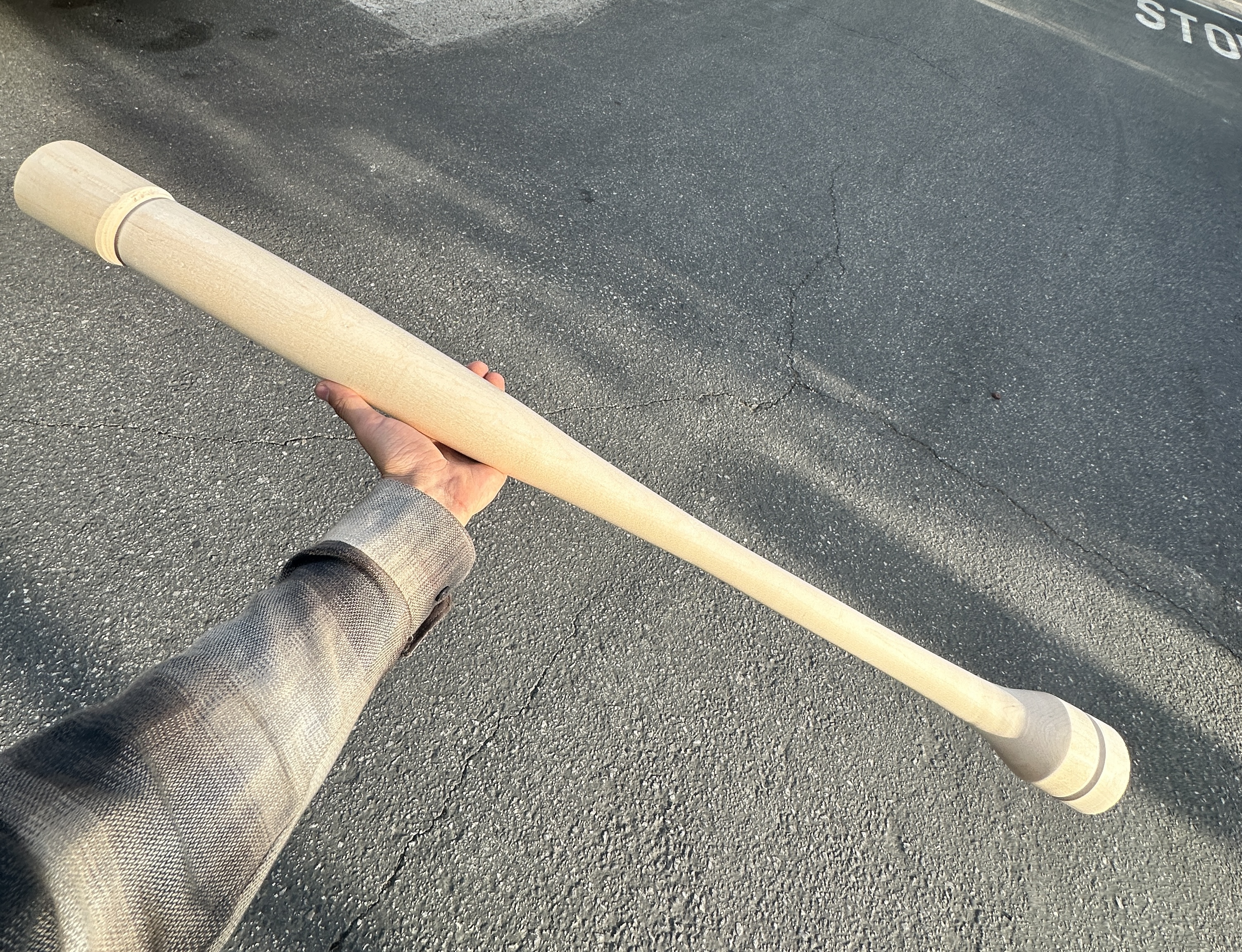 The bat began as maple turning blank, 2-3/4"+ D by 37" [6].