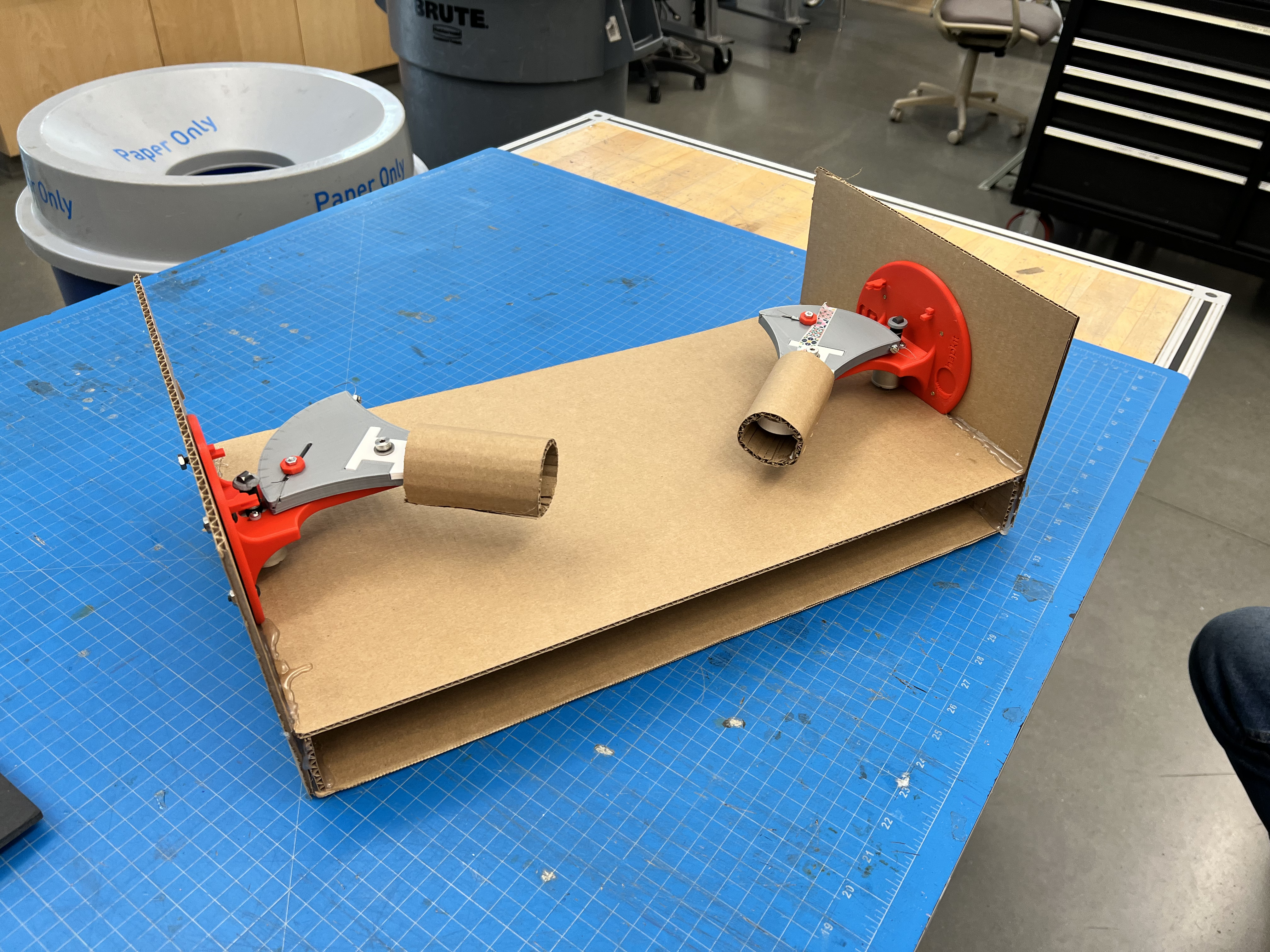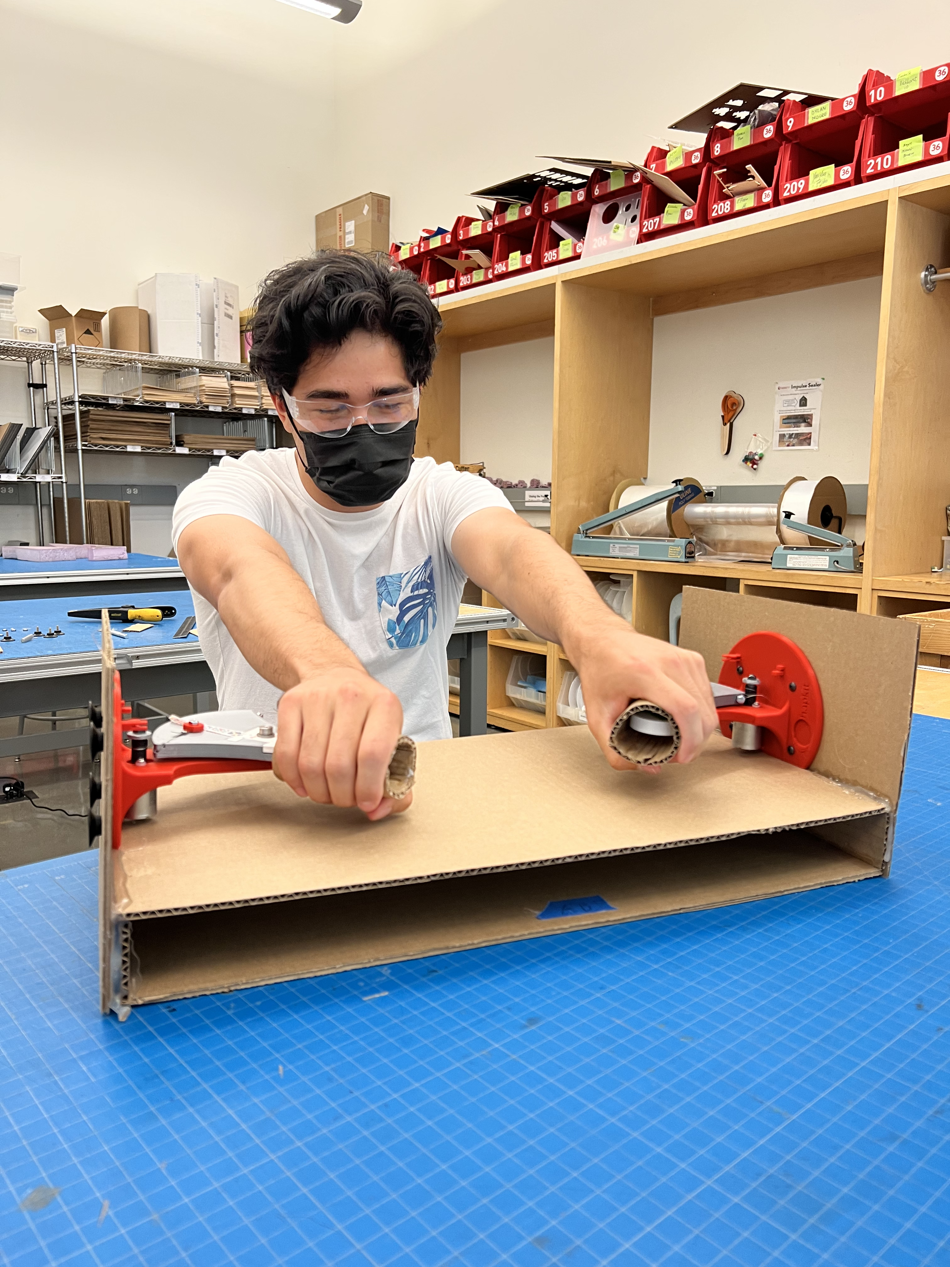 Build our hapkit setup, placing them on vertical boards and arranging them in a rowing position. This will likely be done with cardboard as we found out it was sturdy enough to hold everything in place.