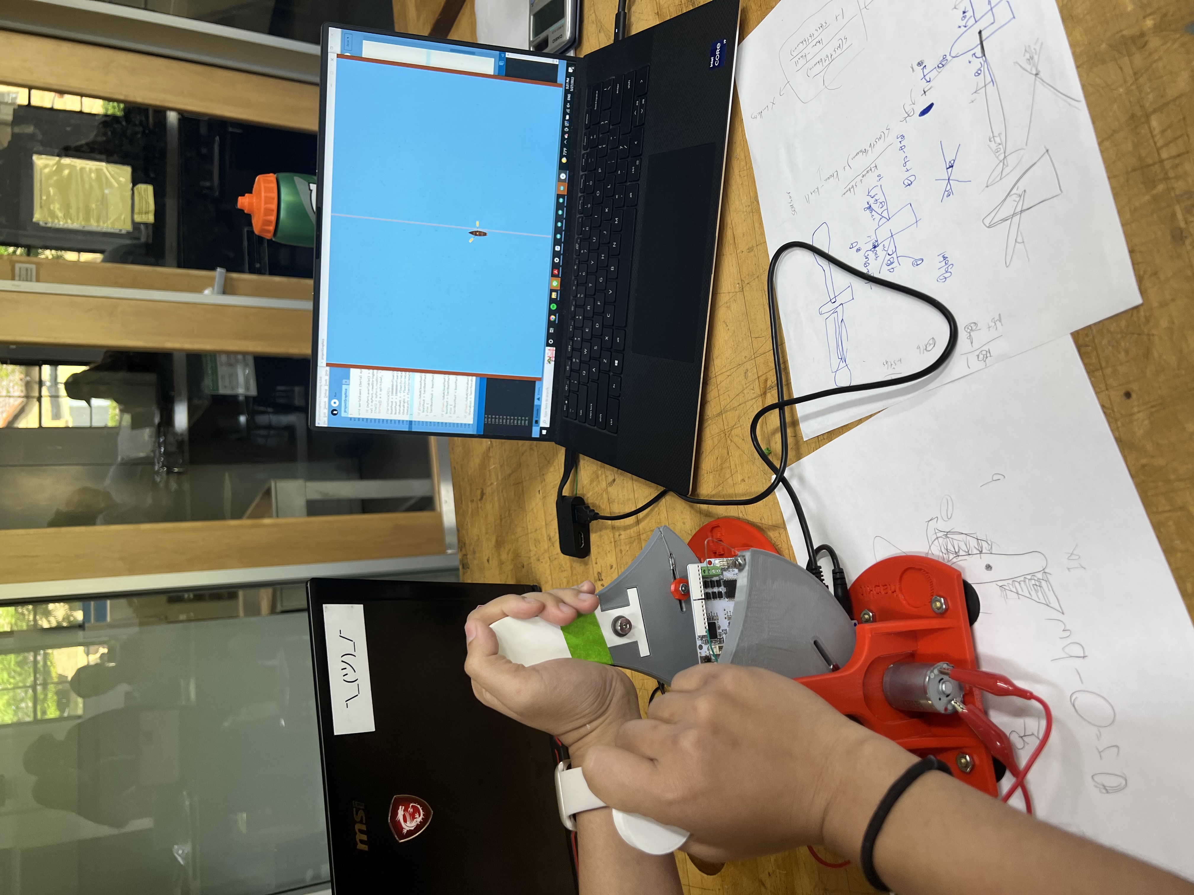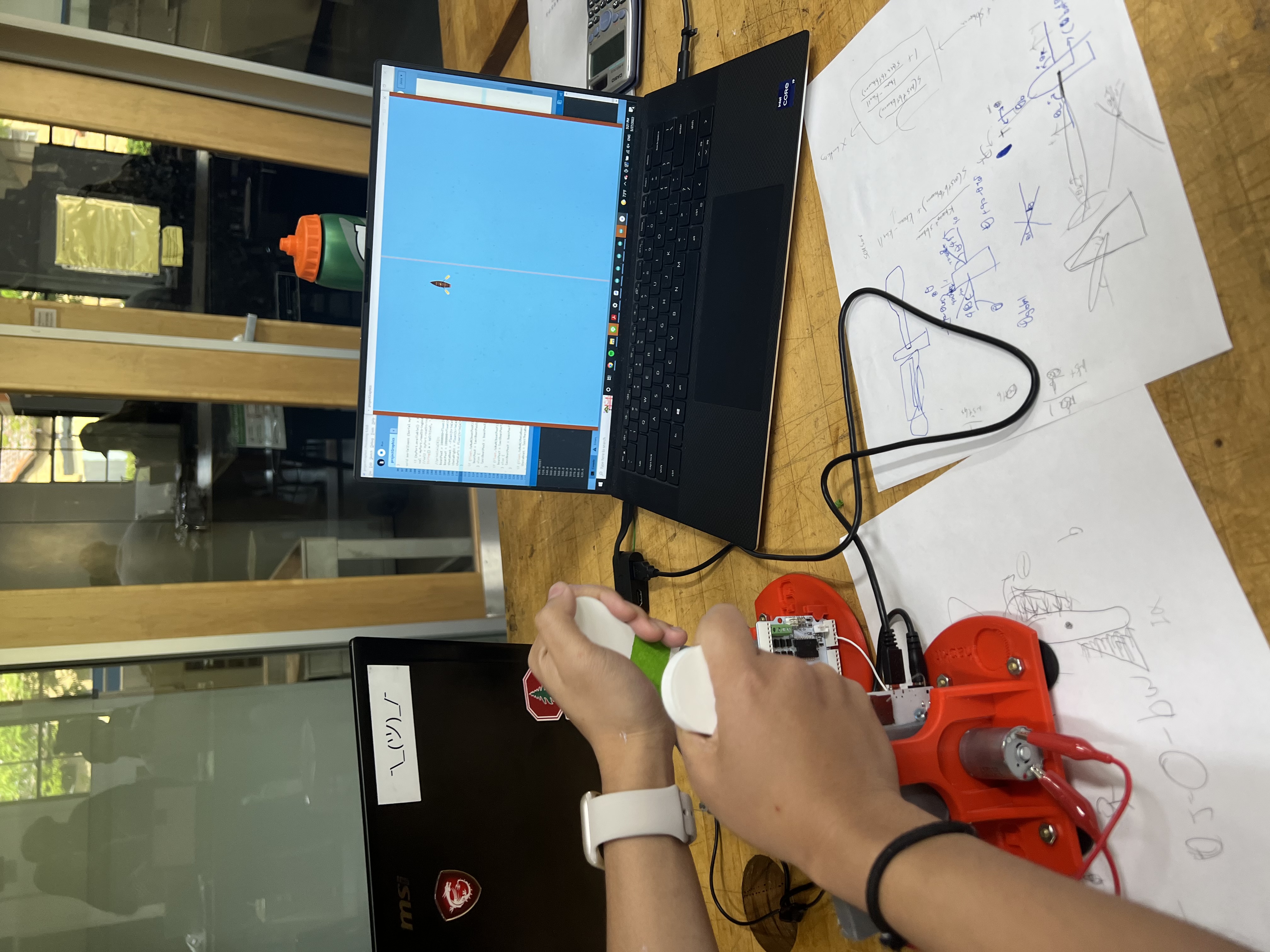 Our plan, to simulate rowing, used the hapkits we built. PD control of the velocity of the handle would provide corresponding force feedback. We orient the hapkit sideways, to better mimic the rowing maneuvers. Pulling towards yourself is a pull through water, and the subsequent push is the reset through air. To simplify the problem, we assume that the water is static, and only the velocity of the pull impacts the motion. The travel, or displacement, of each pull is ignored.