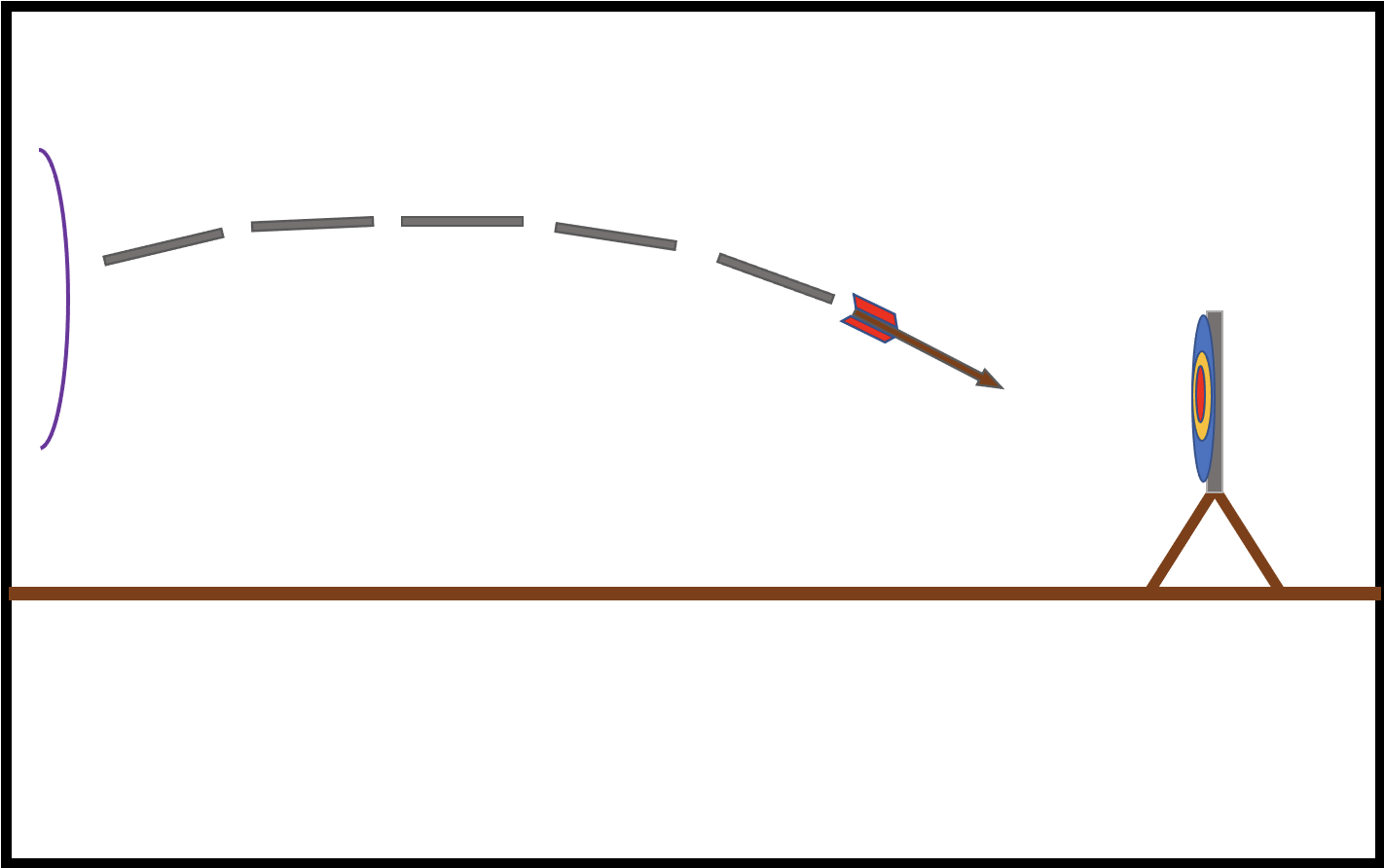 The arrow is modeled as a point mass given an initial velocity along the x-axis upon release from the potential energy stored in the bow. From this initial velocity, the arrow flight trajectory is calculated as follows: