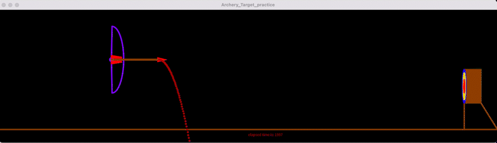 Every 3 seconds after users draw the bowstring still at a position, the arrow is virtually fired automatically for the user. The arrow flight is displayed now instead of the trajectory which allows the user to see whether or not they hit the target. To ensure that the arrow only fires when the user is ready, the arrow is prevented from firing when the draw length is zero and the firing timer resets if the user readjusts the draw length of the bowstring more than threshold. Once the arrow is fired, the virtual arrow is reloaded and the process repeats.